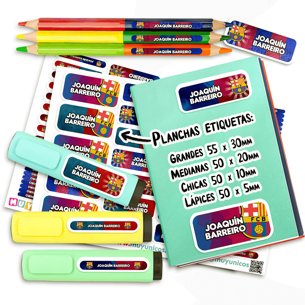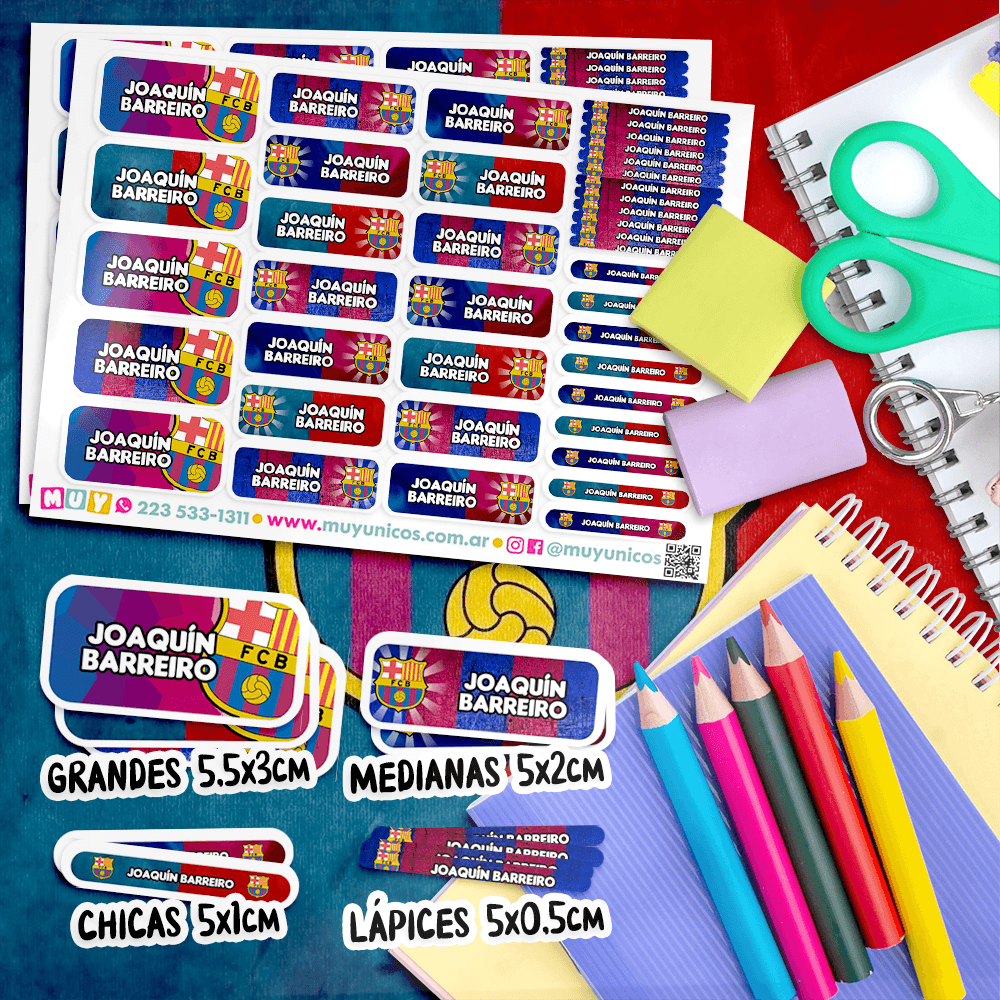 Recibe un kit de etiquetas escolares personalizadas con el nombre que elijas, listas para imprimir. Diseñamos este set a mano para ti y te lo enviamos en un archivo PDF. Este práctico archivo digital en formato PDF de 14 páginas te permite imprimir las etiquetas que necesites, en el tamaño que quieras y cuantas veces desees. Tu compra incluye: Más de mil etiquetas personalizadas de distintos tamaños, diseñadas para adaptarse a todos los útiles y objetos personales. Etiquetas (5×3 cm): Ideales para cuadernos, carpetas, estuches, mochilas y loncheras. Etiquetas (5×2 cm): Perfectas para reglas, marcadores gruesos, sacapuntas, agendas y pegamento…