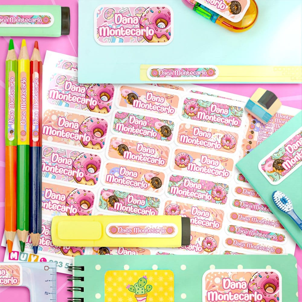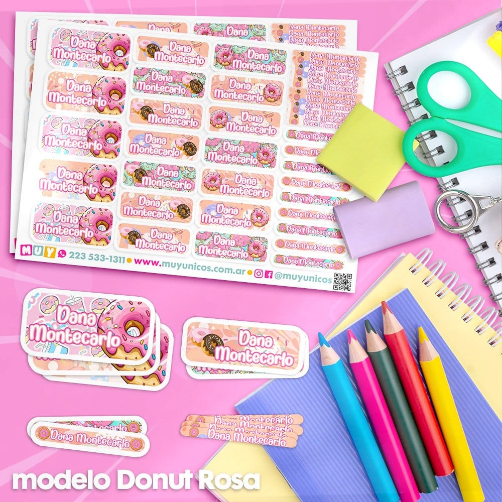Etiquetas Escolares para Imprimir | Donut Rosa (Archivo Digital PDF)